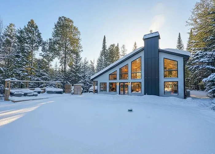 Nabízející lázeňské centrum a patio, vila Spa River Pool Table - Chalet Ombre & Lumiere Entrelacs je umístěna ve vzdálenosti 3 km od Bleuetiere-Framboisiere Ste-Lucie.